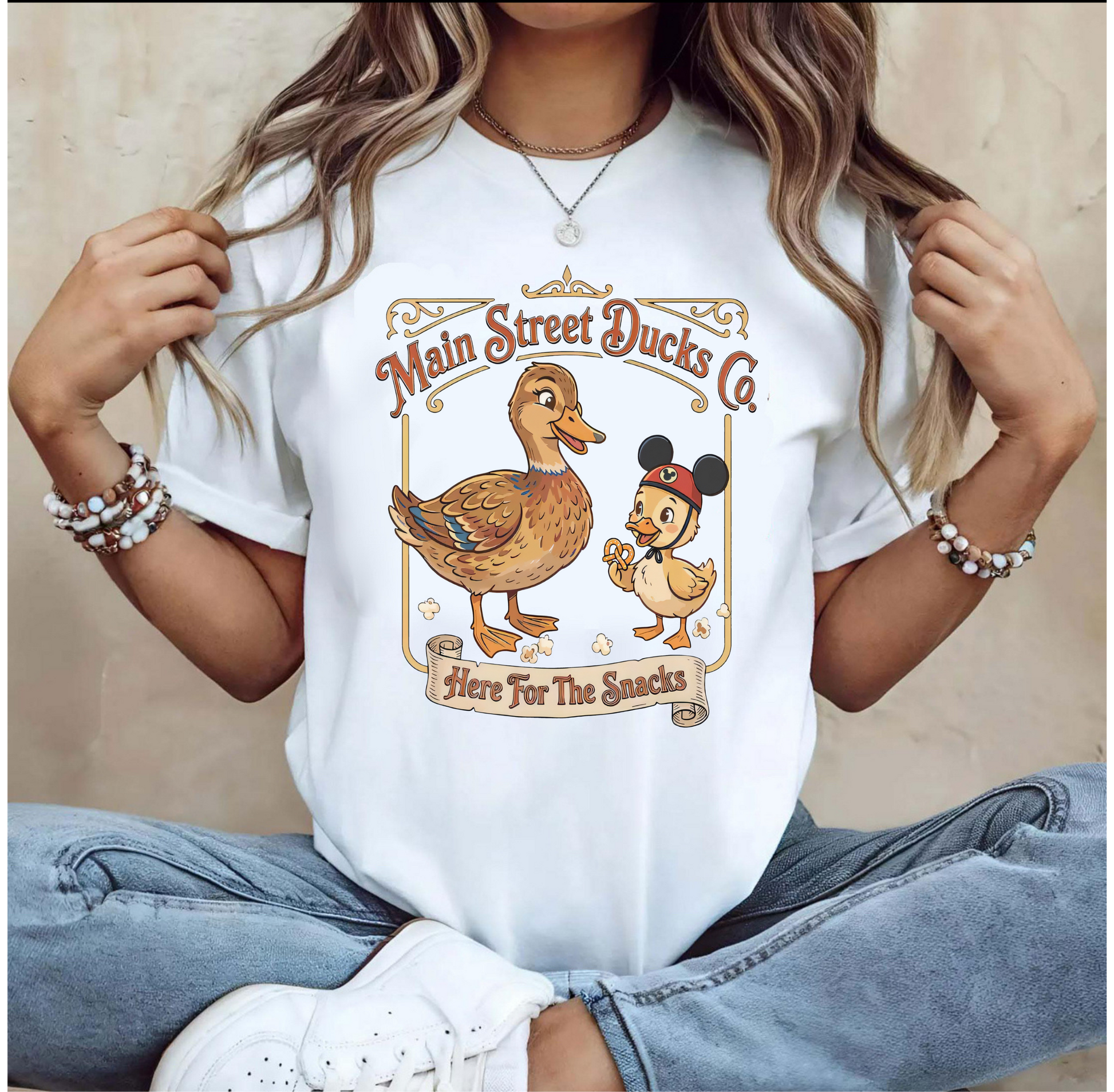 The Main Street Ducks Co. Tee blends vintage-inspired design with a subtle nod to theme park culture. Featuring a nostalgic duck graphic and clean typography, it captures the charm of slow mornings, snack stops, and everything in between.